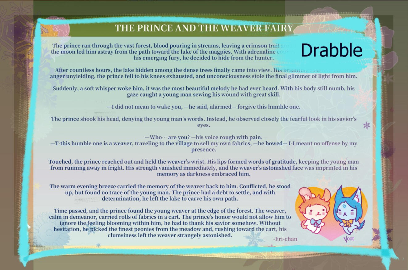 ❄️Drabbles (max 350 palabras) o poemas largos (max 40 líneas o varios poemas más pequeños)